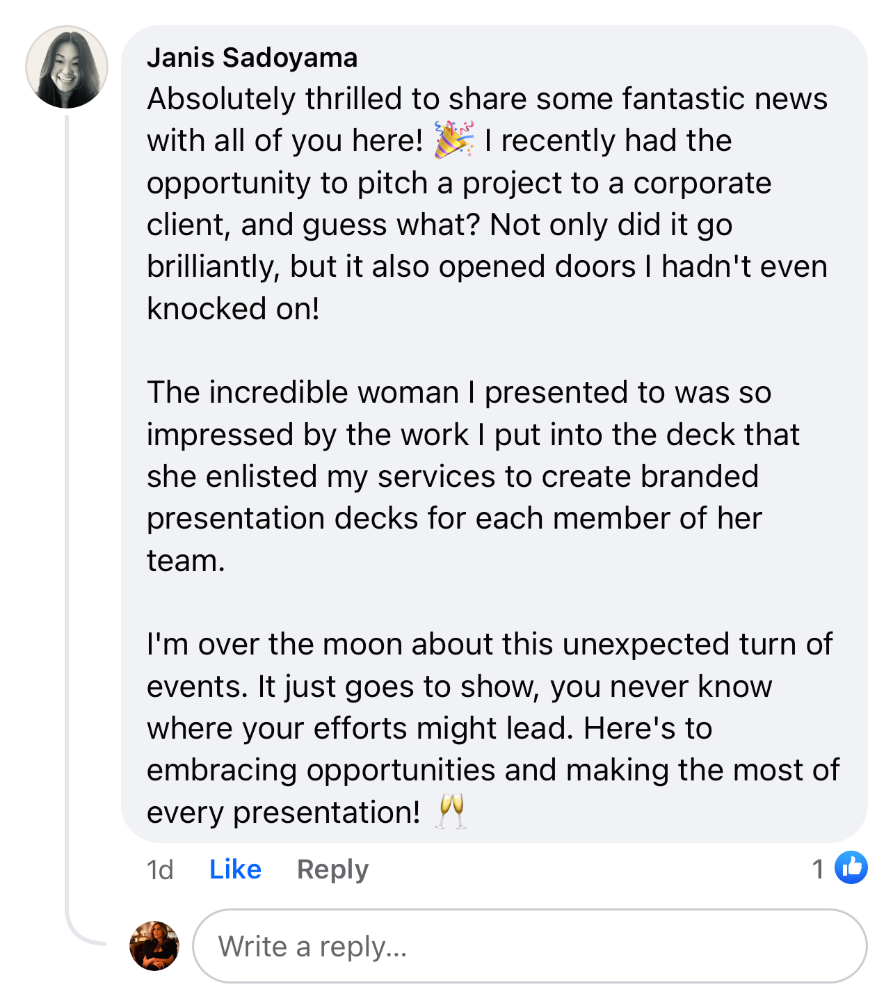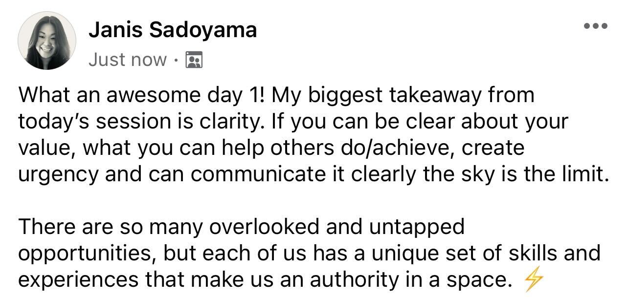 You’ll get front row access to the formula that has helped me secure over $500,000+ in contracts, and you’ll learn how to use your story to attract executive buyers, so you never have to fake it until you make it again, because you got the SAUCE!