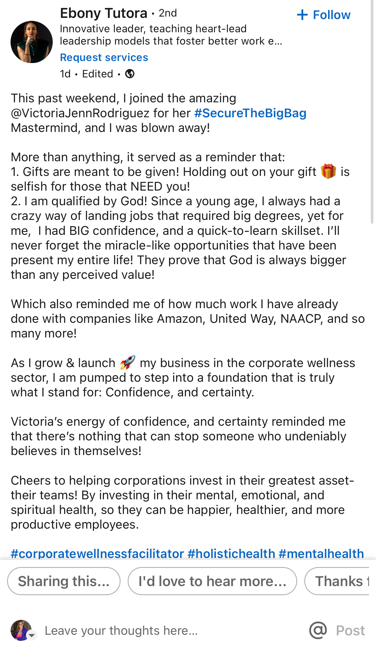 I created this Mastermind to show you how to develop the confidence you need to sell yourself, package your expertise, and get in front of key decision makers with big “bet-on-me” energy, so you can secure 5 and 6 figure contracts consistently, with a strategy that works.