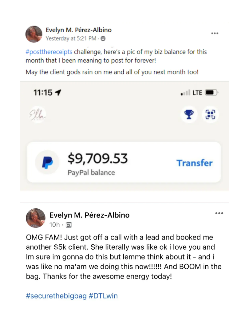 Access to our client connection success group. You can ask questions, collaborate, or celebrate your wins.