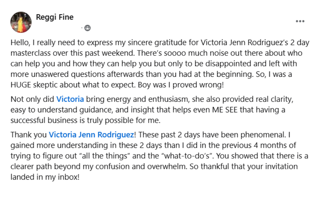 Access to the 2-Day virtual Mastermind with live feedback so you never stay stuck.